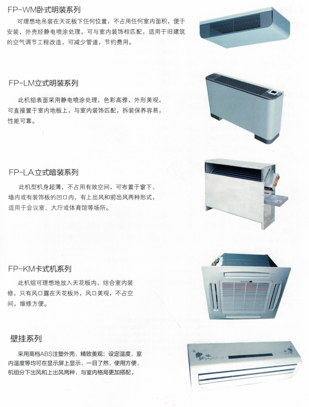 風機盤管機組主要由離心風機、盤管換熱器等構成,是中央空調系統的末端裝置,它廣泛應用于賓館、飯店、工廠、醫院、展覽館、商場以及辦公大樓等多房間或大空間工業和民用建筑的空調場合,以滿足降溫去濕、采暖等要求,為人們創造一個清新、寧靜、四季如春的工作和生活環境。