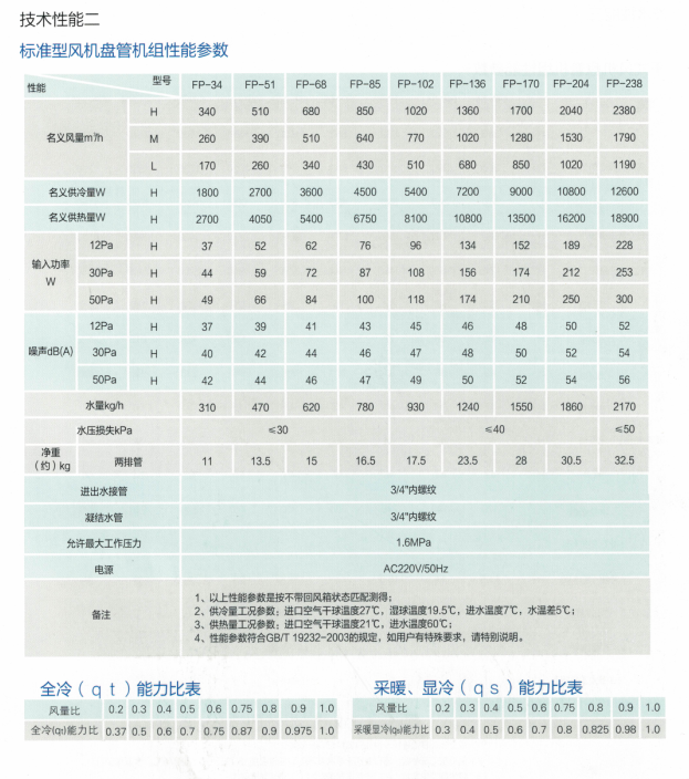 本公司風機盤管機組經過設計優化,盤管性能大幅提高,盤管機組分為高效型和標準型兩種;其中標準型風機盤管能滿足國標要求的各項參數,高效型風機盤管的性能參數優于國標要求20%以上。