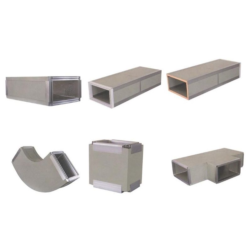 酚醛復合風管中間層為酚醛泡沫,內外層為壓花鋁箔復合而成。酚醛泡沫板與鋁箔復合制成夾芯板,然后加上專用法蘭配件,制成的酚醛復合風管用于中央空調通風。